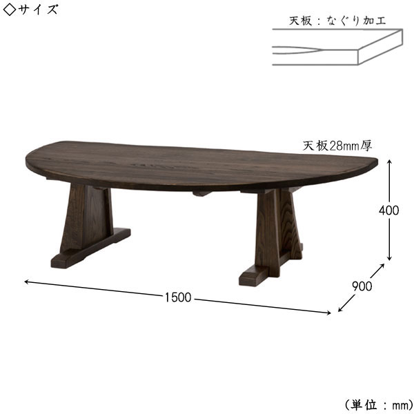 商品仕様 【リビングテーブル】 ■サイズ/約W1500×D900×TH400mm ■主材/クリ ■天厚28mm ■PU仕上げ・オイル仕上げ 注意事項 ■掲載商品画像は撮影状態・PC環境などにより実物と色が異なって見える場合がございます。