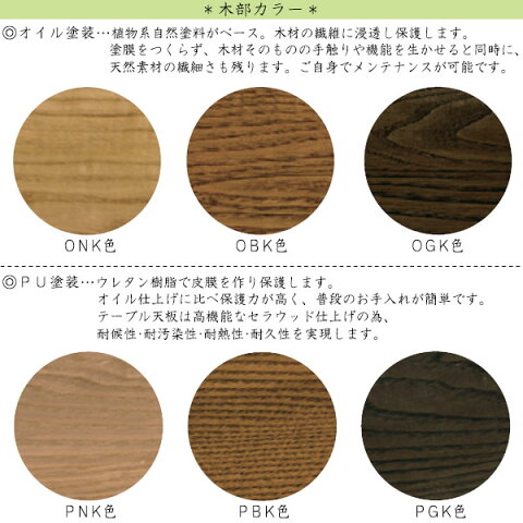 木部カラーは、PU仕上げとオイル仕上げの2種類6色からお選びいただけます。