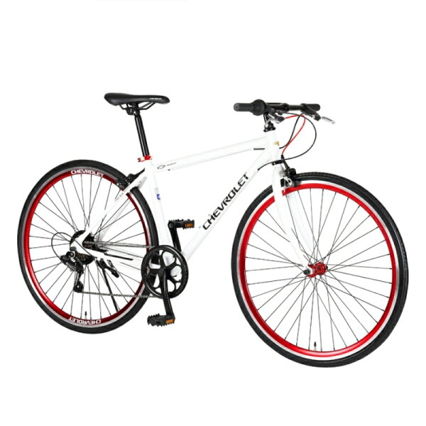 品名:CHEVROLET AL-CRB7006 カラー:64113-01 / Black / JAN:4562373385123 64113-12 / White / JAN:4562373385130 サイズ:440mm 重量:約11.8kg 材質:アルミフレーム コンポーネント:6speed、キャリパーブレーキ、アルマイトディープリム タイヤサイズ:700×28C フレンチバルブ(英式アダプター付属)