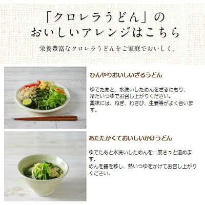 商品詳細 商品名 クロレラうどん 原材料 小麦粉、食塩、クロレラ粉末/加工でんぷん 内容量 6箱(1箱 220g) 賞味期限 別途商品ラベルに記載 お召し上がり方 たっぷりの沸騰したお湯で、さし水をせずに5分間お好みのかたさにゆであげます。